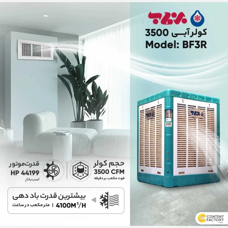 کولر آبی 3500 یا 4000 برفاب (مناسب تا 70 متر) (پس کرایه)