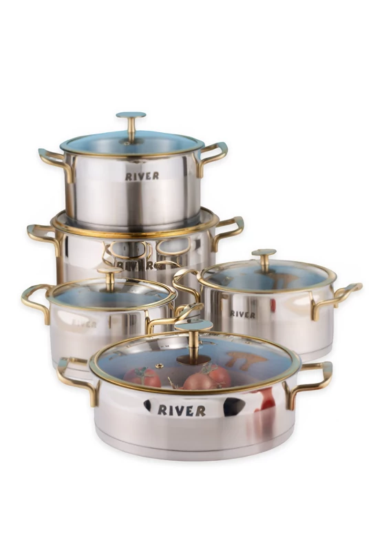 سرویس قابلمه 10 پارچه ریور باکالیت-استیل طلا