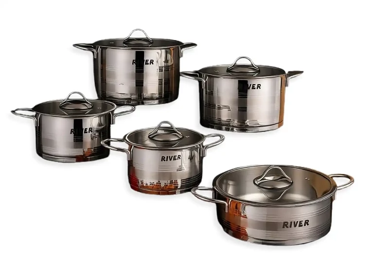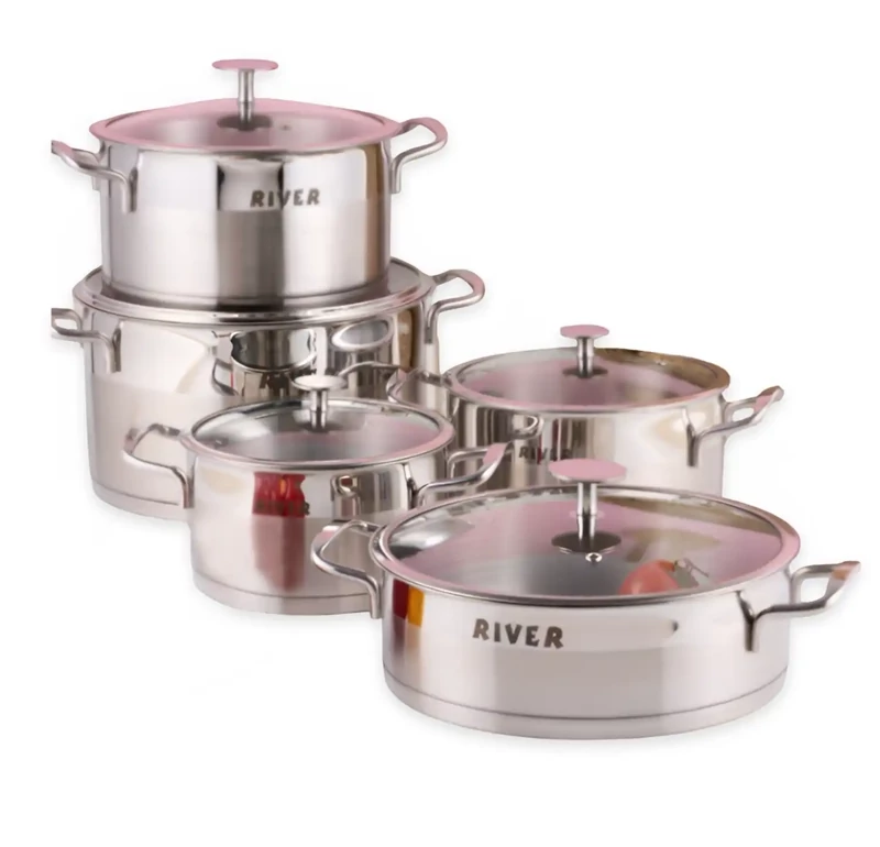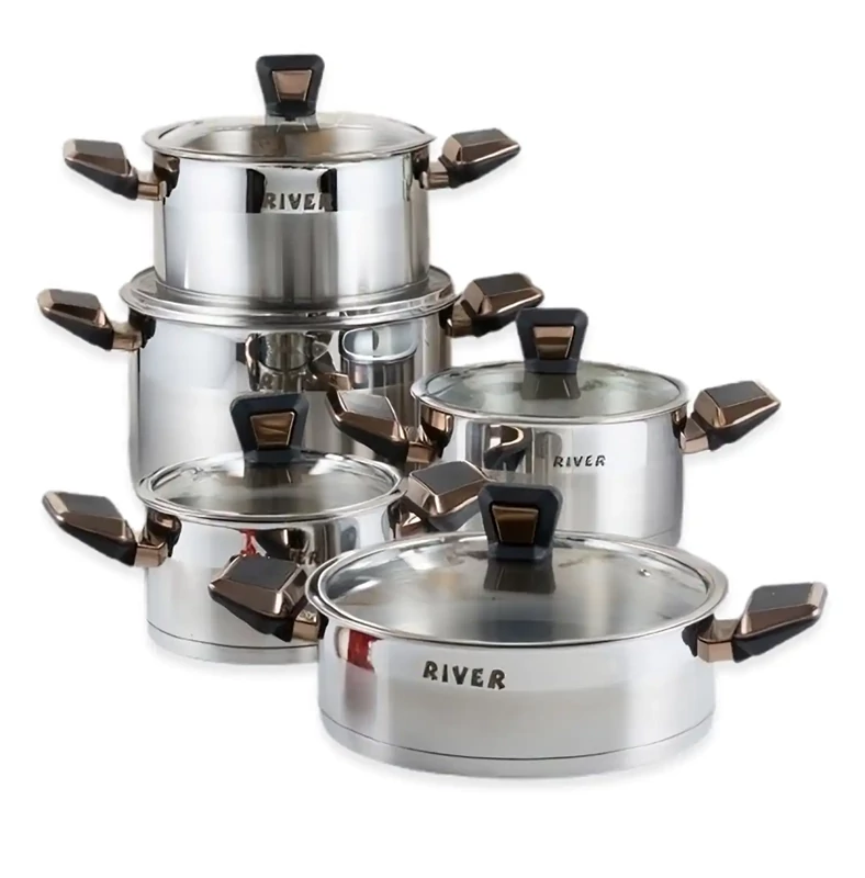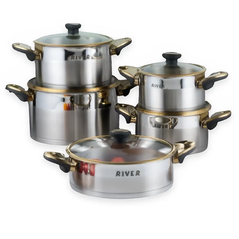سرویس قابلمه 10 پارچه استیل ریور با دسته استیل 3304