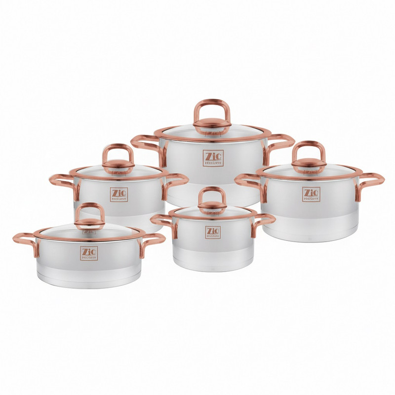 سرویس قابلمه و تابه استیل 9 پارچه بازرگانی زیو مدل 1390 رز گلد