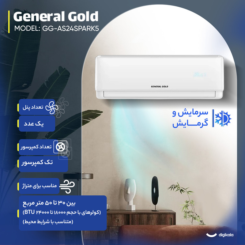 ویژگی یونیت داخلی کولر گازی جنرال گلد 24000 اینورتر اسپارک T3