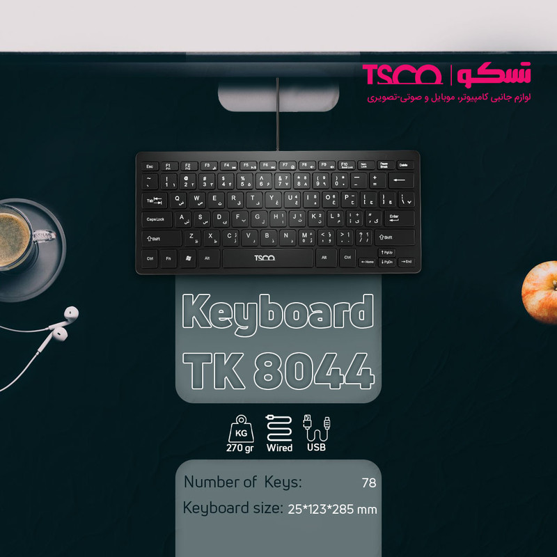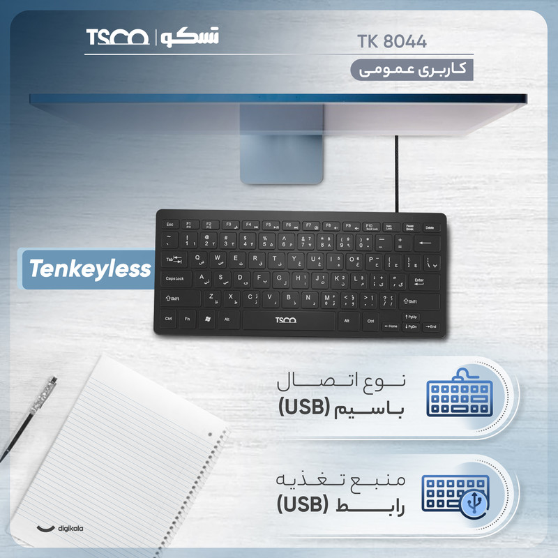با طراحی ساده و عملکردی روان، کیبورد تسکو مدل TK 8044 نهتنها به عنوان یک ابزار کارآمد، بلکه بهعنوان یک همراه مطمئن در انجام وظایف روزمره شما ایفای نقش میکند.