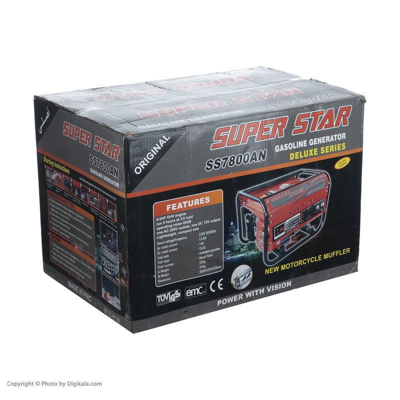 در محیطهایی که دسترسی به برق شهری وجود ندارد استفاده از موتور برق یک راه حل کاربردی خواهد بود. منبع تغذیه موتور برق از سوخت گازوییل یا بنزین است که در این مدل از بنزین باید استفاده کرد. این مدل با توان خروجی 3500 وات قدرت کافی برای روشنایی کامل و استفاده از وسایل برقی مثل یخچال و غیره را در محل مسکونی فراهم میکند. ولتاژ خروجی این دستگاه 12 ولت است که مناسب دستگاه و لوازم شهری خواهد بود. شاید دغدغهای که برای استفاده از موتور برق وود دارد ثابت نگه داشتن ولتاژ و جریان خروجی است که با استفاده از تکنولوژی AVR در این مدل، کار برای شما راحت شده است. موتور برق سوپر استار مدل SS7800AN با وزن 32 کیلوگرمی و ابعاد 60x42x42 سانتیمتری برای استفاده در شرایط کمپینگ در طبیعت، استفاده در ویلا برای تامیت روشنایی، استفاده در خانههای روستایی و دیگر فعالیتها کاربرد خواهد داشت. شاید استفاده از موتور برق صدای زیادی داشته باشد اما باتوجه به کاربردی بودن این وسیله و ویژگیهای مثبت آن، میتوان گفت این وسیله یکی از کاربردیترین و سریعترین راه تامین برق خواهد بود.