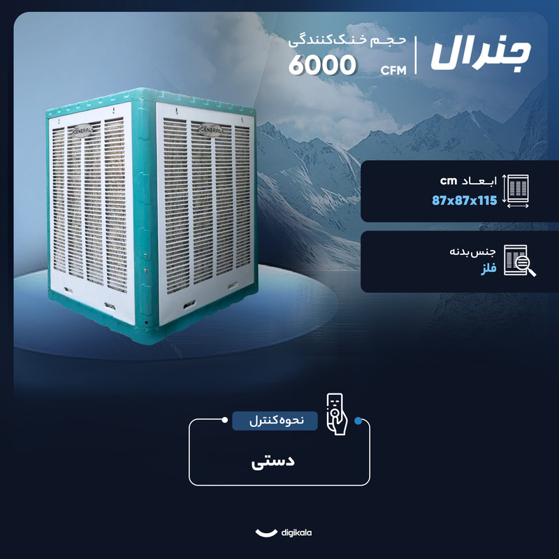 اگر به دنبال یک کولر آبی قدرتمند، باکیفیت و مناسب برای فضاهای متوسط تا بزرگ هستید، کولر آبی 6000 جنرال مدل T_6000 میتواند یک گزینه عالی برای شما باشد. این کولر با طراحی دیواری و عملکرد قابل اطمینان خود، به شما کمک میکند تا در روزهای گرم تابستان از هوای خنک و مطبوع لذت ببرید. قدرت خنککنندگی این کولر 6000 CFM است که برای محیطهایی با مساحت بین 70 تا 120 متر مربع کاملاً مناسب میباشد. با چنین ظرفیتی میتوانید این کولر را برای خانه، محل کار، فروشگاه یا کارگاه خود استفاده کنید و خیلی سریع فضا را خنک کنید. جنس بدنه فلزی و مقاوم در برابر زنگزدگی یکی از ویژگیهای مثبت این کولر است که باعث افزایش طول عمر دستگاه میشود. همچنین این کولر از پوشالهای معمولی بهره میبرد که دسترسی و تعویض آنها بسیار آسان است. سیستم کنترل دستی ساده و تنظیم خودکار سطح آب با فلوتر مکانیکی از دیگر مزایای این کولر است که کار کردن با آن را برای همه افراد راحت میکند. شما میتوانید با اتصال کولر به آب شهری بدون نگرانی از بابت پر شدن مخزن، از عملکرد بیوقفه دستگاه لذت ببرید. این کولر با دهانه خروجی باد 60×60 سانتیمتری و حداکثر قدرت باددهی 8000 متر مکعب در ساعت هوای خنک را به خوبی و با قدرت در محیط پخش میکند. همچنین استفاده از موتور و پمپ آب با کیفیت بالا (موتوژن تبریز با سیمپیچ مس) تضمینکننده عملکرد مطمئن و دوام طولانی کولر است. اگر یک کولر آبی پرقدرت، اقتصادی و مناسب برای تابستان میخواهید، کولر آبی 6000 جنرال T_6000 با مصرف برق تک فاز 220 ولت، بدنه مستحکم و کاربری آسان، میتواند یکی از بهترین انتخابهای شما باشد.