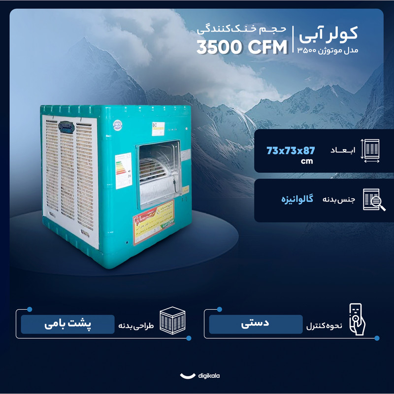 کولر آبی موتوژن مدل ۳۵۰۰ یکی از مدلهای میانرده و پرفروش در رده کولرهای خانگی است که با ظرفیت خنککنندگی ۳۵۰۰ CFM برای فضاهای ۵۰ تا ۷۰ متر مربع طراحی شده و ترکیبی از قدرت، دوام و مصرف بهینه انرژی را ارائه میدهد. این کولر از نوع پشتبامی معمولی بوده و قابلیت استفاده در خانهها، مغازهها و دفاتر متوسط را دارد. طراحی دقیقی که در آن بهکار رفته موجب گردش یکنواخت و قدرتمند هوا میشود و در نتیجه، سرمایی مطلوب و طبیعی در محیط ایجاد میکند.