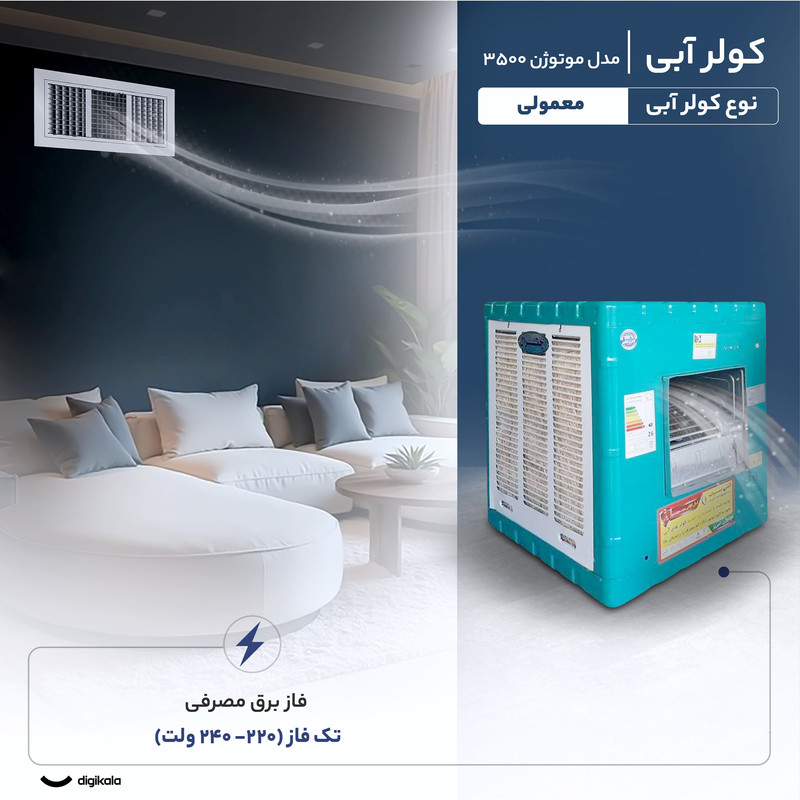 کولر موتوژن مدل ۳۵۰۰ به موتور قدرتمند ۱/۳ اسب بخار (HP) مجهز است که توان مناسبی برای تأمین حجم هوادهی بالا دارد. سیستم برق مصرفی تکفاز با ولتاژ ۲۲۰ تا ۲۴۰ ولت است و از نظر مصرف انرژی در محدوده اقتصادی قرار میگیرد. عملکرد کولر توسط کلیدهای دستی کنترل میشود تا کاربر بتواند به سادگی وضعیت کارکرد و سرعت باد را تنظیم کند.