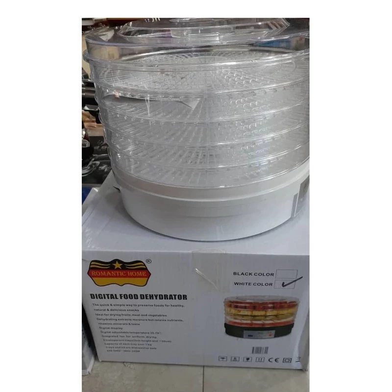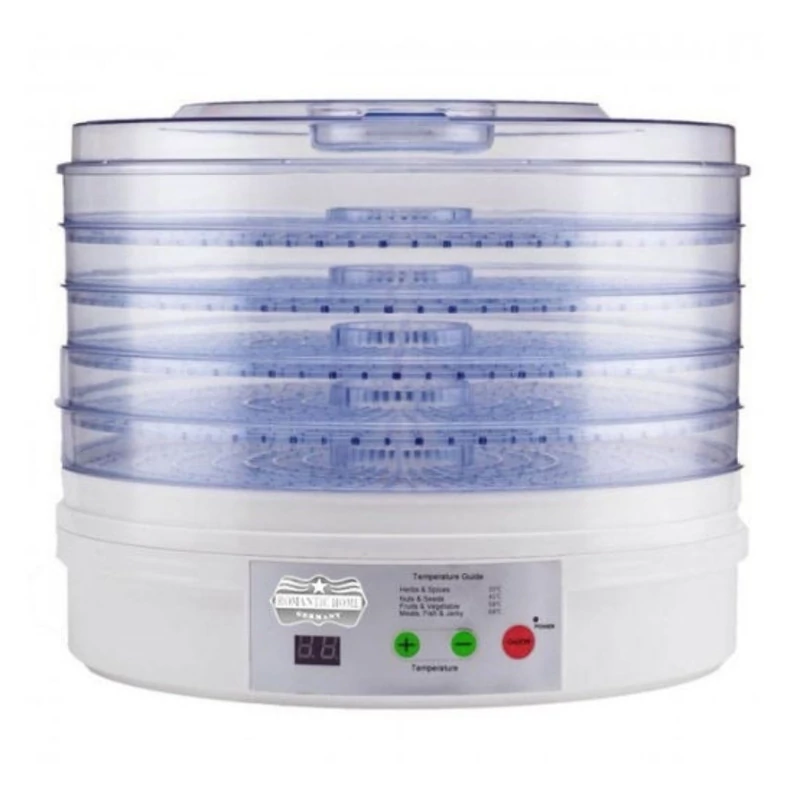 مشخصات ابعاد: ۳۵x۳۵x۳۰ سانتیمتر وزن ۲.۵ گرم سایر ویژگیها ۵ طبقه ظرفیت سینی هر طبقه ۱ کیلو گرم نمایشگر دیجیتال طول سیم ۰.۸ سانتی متر توان ۲۴۵ وات جنس بدنه پلاستیک امکانات شستوشوی لوازم جانبی در ماشین ظرفشویی قابلیت شستوشوی لوازم جانبی در ماشین ظرفشویی