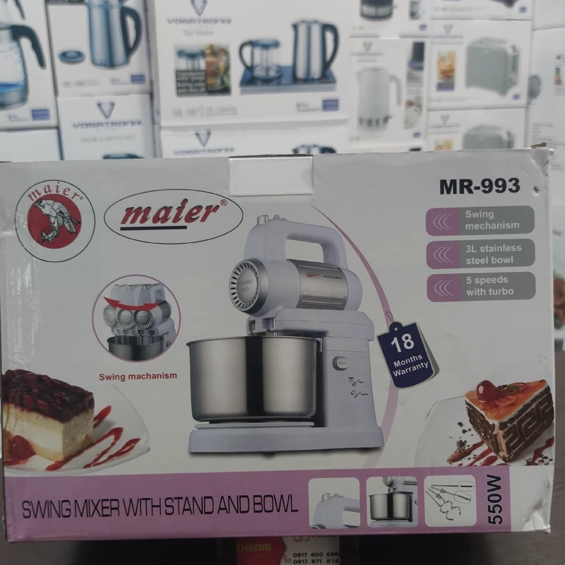 داردامکان چرخش به طرفینداردتعداد پره های همزن2عددجنس پرهاستیل ضد زنگتنظیمات سرعتداردتعداد تنظیمات سرعت5سرعتهظرفیت کاسه