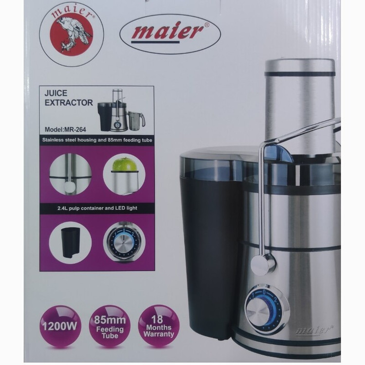توان و قدرت آبمیوه گیر MR-264 از 1200 وات ساخته شده است. این قدرت برای یک آبمیوه گیر قابل قبول است. این دستگاه تک کاره ی 2 سرعته برای مصارف خانگی بسیار مناسب است. البته این محصول را در بسیاری از آبمیوه فروشی ها نیز مشاهده کرده ایم. چراکه قیمت این آبمیوه گیری مایر نسبت به ویژگی های منحصربفردش بسیار مقرون بصرفه در نظر گرفته شده است.