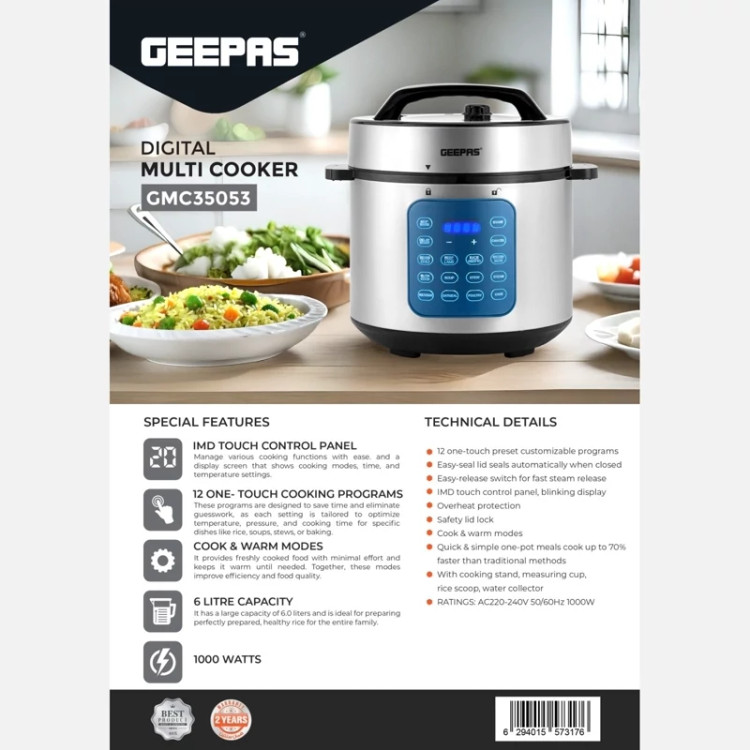 زودپز برقی جیپاس 6 لیتر لمسی اصل مدل GMC35053