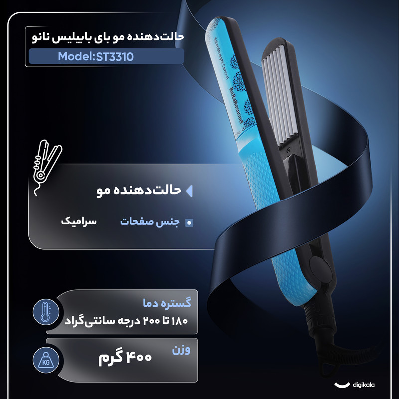 دستهبندی: اتو و حالت دهنده ی مومنبع انرژی: برقحداقل دما: 140 سانتیگرادوزن: 400 گرمتنظیمات دما: چهار حالتهابعاد : 330 × 50 × 100 میلیمترنوع دستگاه حالتدهنده مو : حالتدهنده موحداکثر دما : 200 سانتیگرادخاموشی خودکار پس از : 60 دقیقهطول سیم : 2 مترمدت زمان گرم شدن : 180 ثانیهجنس صفحات : سرامیکسایر توضیحات : دارای دکمهی کم و زیاد کردن درجه حرارت از 140 تا 200 درجه - با قابلیت خاموش شدن خودکارامکانات دستگاه حالتدهنده مو : قابلیت تنظیم دمانمایش بیشتر