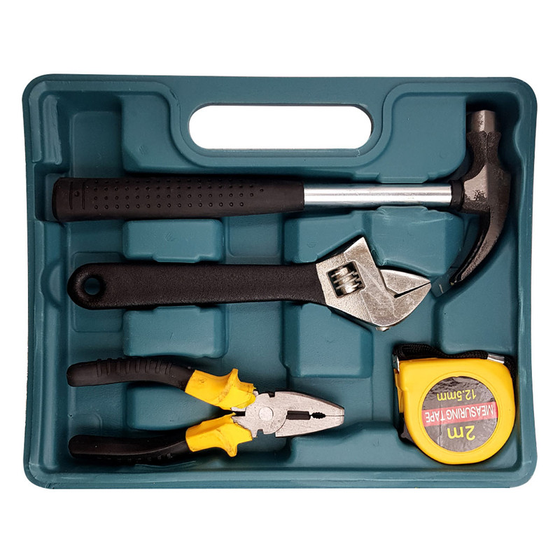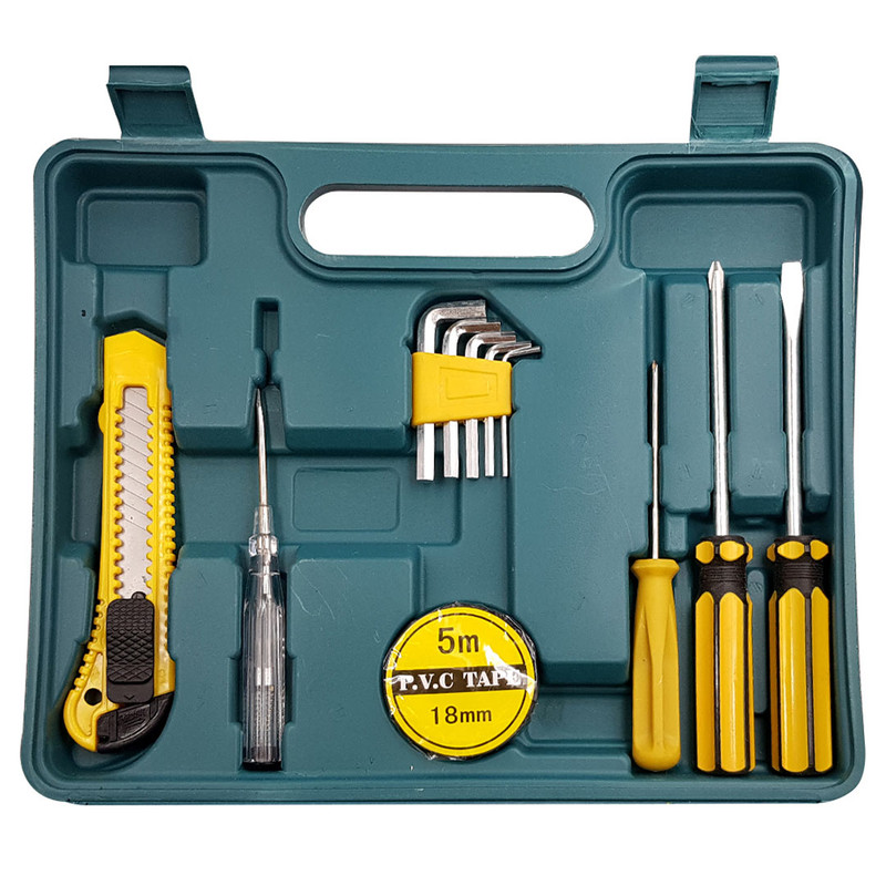 اقلام مجموعه ابزار عبارت از یک عدد آچار فرانسه -یک عدد چکش فلزی-یک عدد انبر دست-یک عدد متر دو متری-یک عدد موکت بر-یک عدد لنت-یک عدد پیچ گوشتی دو سو-یک عدد فاز متر دو سو