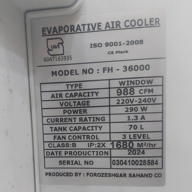 کولر پرتابل سلولزی 36000 مدیا مناسب تا 80 متر (پس کرایه)