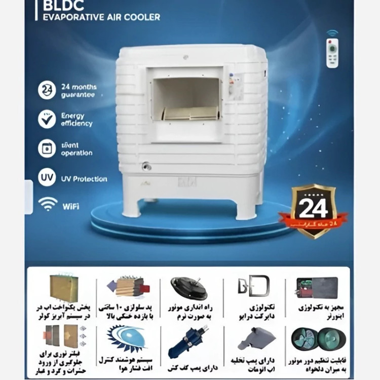 این کولر با بهرهگیری از موتور BLDC کمصدا و امکانات هوشمند، علاوه بر خنککنندگی بالا، مصرف برق و آب را به شکل قابلتوجهی کاهش میدهد ⚡💧