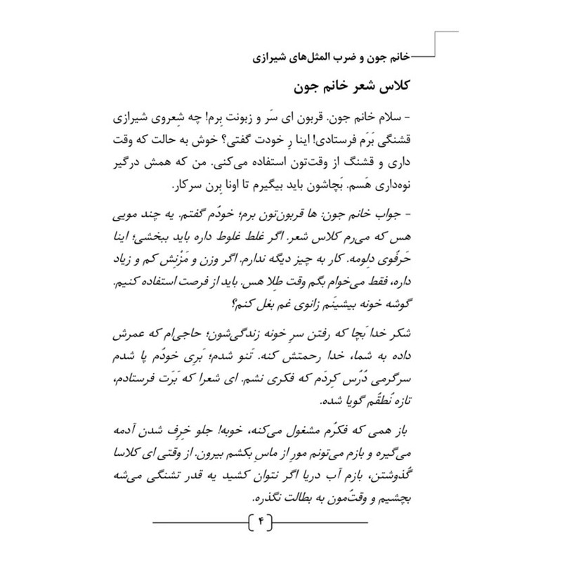سرکار خانم صدیقه هاشمزاده نویسنده «مجموعه حکایات خانمجون» با نوشتن این داستانهای طنز و جذاب سعی کردند در کنار حفظ گویش شیرین شیرازی، نکات آموزنده زیادی را به نسل جوون و علاقهمندان به کتاب منتقل کنند؛ در عین حال برای بزرگسالان هم جذابیت ویژهای داشته باشد.