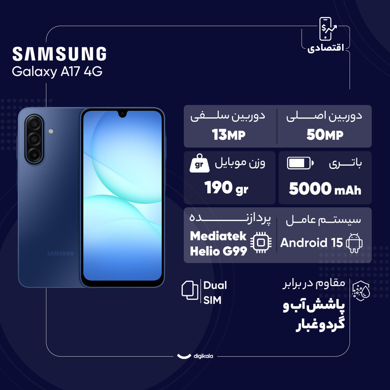 گوشی موبایل سامسونگ مدل Galaxy A17 4G دو سیم کارت ظرفیت 128 گیگابایت و رم 6 گیگابایت - ویتنام