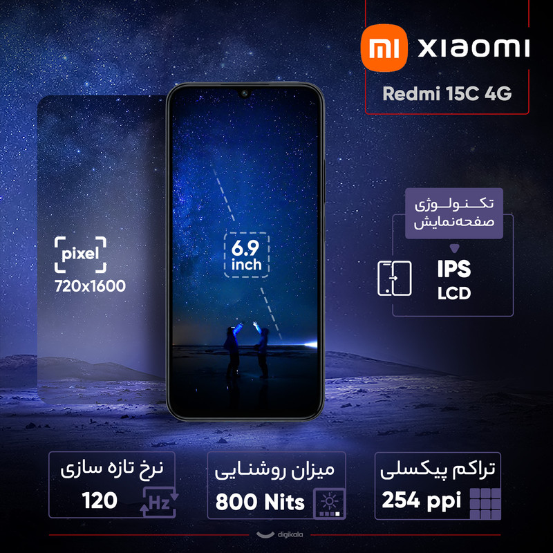 گوشی Redmi 15C 4G یکی از تازهترین میانردههای اقتصادی شیائومی است که با تمرکز بر دوام باتری، صفحهنمایش بزرگ و طراحی مدرن روانه بازار شده است. این دستگاه با بدنهای مقاوم و گواهیIP64 در برابر گرد و غبار و پاشش آب، ترکیبی از استحکام و زیبایی را ارائه میدهد. نمایشگر ۶.۹ اینچی IPS LCD با نرخ نوسازی ۱۲۰ هرتز، تجربهای روان و جذاب را در تماشای فیلم و اجرای بازیها فراهم میسازد. قلب تپندهی این گوشی، تراشهی Mediatek Helio G81 Ultra است که با معماری ۱۲ نانومتری و هشت هستهی پردازشی، عملکردی قابل قبول برای استفادههای روزمره، فعالیت در شبکههای اجتماعی و بازیهای سبک ارائه میدهد. همچنین با پشتیبانی از کارت حافظه جانبی، نگرانی شما در رابطه با حافظه را رفع میکند. در بخش تصویربرداری، دوربین اصلی ۵۰ مگاپیکسلی به همراه لنز کمکی QVGA، تصاویری شفاف و دقیق ثبت میکند و دوربین سلفی ۸ مگاپیکسلی نیز برای تماسهای تصویری و عکسهای روزمره کیفیت مناسبی دارد. باتری ۶۰۰۰ میلیآمپرساعتی با شارژ سریع ۳۳ واتی یکی از نقاط قوت اصلی این دستگاه محسوب میشود. در مجموع، Redmi 15C 4G گزینهای ایدهآل برای افرادی است که به دنبال گوشیای بادوام، اقتصادی و کارآمد در عین بهرهمندی از طراحی مدرن و نمایشگر بزرگ هستند.