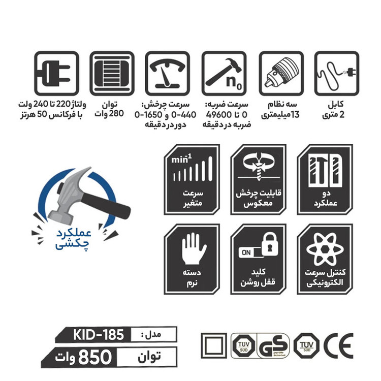 دریل چکشی کنزاکس مدل KID-185