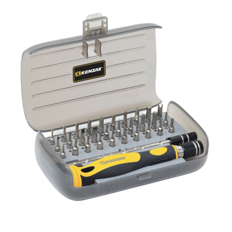 ست پیچ گوشتی موبایلی 32 پارچه کنزاکس مدل 9283، همراه با میله رابط تلسکوپی، برای تعمیرات موبایل، کامپیوتر، ساعت، دستگاه های الکترونیکی و ... کاملا مناسب است. جنس سری های این مدل پیچ گوشتی از فولاد کروم وانادیوم بوده و سری پیچ گوشتی ها سختکاری شده تا 58 راکول C و همچنین جنس دسته ها از TPR + ABS است. ست پیچ گوشتی موبایلی کنزاکس مدل 9283، دارای 1 عدد دسته پیچ گوشتی، 1 عدد میله رابط تلسکوپی و 30 عدد سری پیچ گوشتی است و تمام نیازهای شما را پاسخگو خواهد بود.