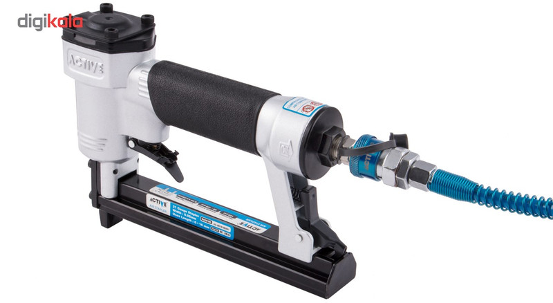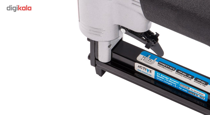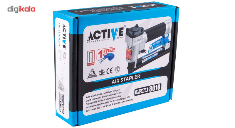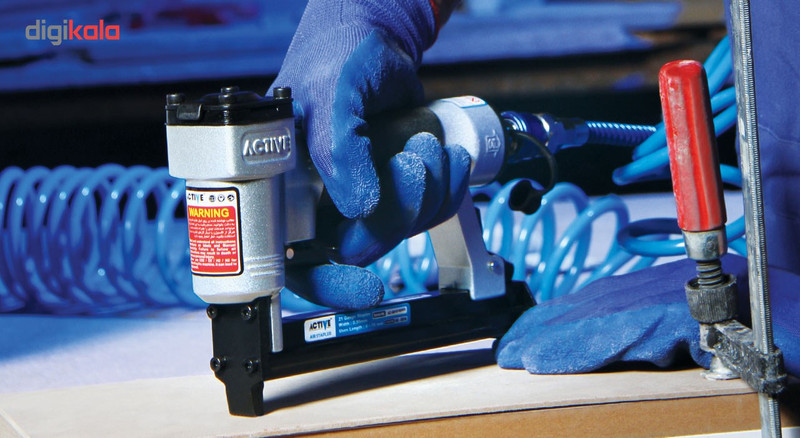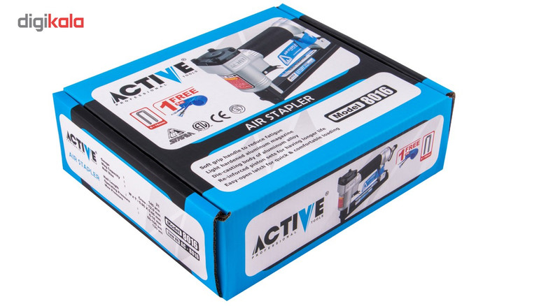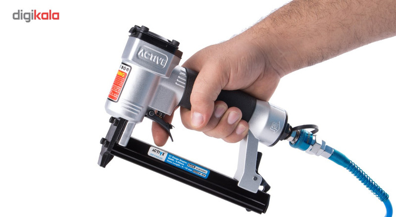منگنه کوب بادی ابزاری جهت منگنه کردن قطعات چوبی و غیره است. منگنه کوب بادی به دستگاه کمپرسور هوا متصل شده و با فشار ماشه این دستگاه، تیغه (سنبه) این دستگاه توسط هوای فشرده به حرکت در آمده و سوزن منگنه را با فشار استاندارد وارد قطعه کار مینماید تا اتصال بست توسط سوزن منگنه انجام گیرد.« منگنه کوب بادی اکتیو مدل AC8016 » دارای بدنه ارگونومیک خوشدست ضد خستگی است. همچنین در قسمت دسته از روکش نرم جهت جلوگیری از عرق کردن دست نیز استفاده شده. این دستگاه دارای خشاب مستحکم جهت قرار گیری سوزن منگنه در سایز 6 الی 16 میلیمتر بوده. ظرفیت خشاب این دستگاه 140 سوزن منگنه هست. تیغه (سنبه) و پیستون از قطعات پر کار در این دستگاه بوده و از این رو، از تیغه و پیستون تقویت شده در این دستگاه استفاده شده است. از این دستگاه عمدتا جهت ساخت مبلمان، تخته کوبی کف زمین (کف پوش)، کابینت سازی، قاب سازی، رویه کوبی، پالت و بسته بندی و کاربردهای همانند دیگر استفاده میشود. بر روی این دستگاه یک عدد دنباله ¼" نیز است تا خریدار پس از خرید این کالا براحتی و به سرعت آن را به شلنگ هوا متصل نماید. در بسته بندی این دستگاه، به همراه این دستگاه یک عدد شلنگ فنری 5 متری با کیفیت با مارک اکتیو و از جنس پولی یورتان نیز ارائه میشود. این دستگاه دارای سرعت منگنه کوبی بالا است تا کابر در حداقل زمان بتواند حداکثر بازده را از این دستگاه داشته باشد.توجه: هنگام استفاده از این دستگاه اطمینان حاصل نمایید فشار کاربردی کمپرسور بین 60 الی 100 پوند بر اینچ مربع (60PSI~100PSI) باشد. منگنه کوب بادی اکتیو مدل AC-8016 دارای 18ماه گارانتی طلایی و 5سال پشتیبانی قطعات وخدمات پس از فروش در سراسر ایران است.