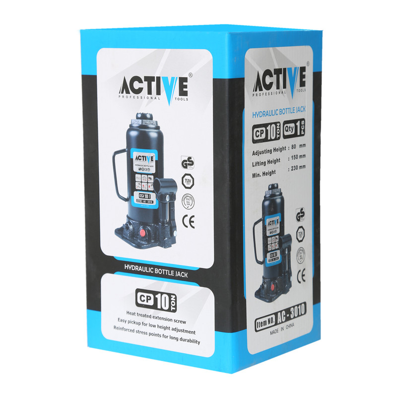 جک روغنی 10تن برند اکتیو مدل AC-3010 قابلیت بلند نمودن اجسام سنگین تا وزن 10 تن (عموما خودرو های سواری نیمه سنگین و سنگین) را دارد. این جک دارای اهرم کمکی مقاوم و با استحکام میباشد تا جهت بالا بردن ارتفاع بتوان از آن به آسانی استفاده نمود. این جک هیدرولیک در حالت جمعشده ارتفاعی برابر 23 سانتیمتر دارد و حداکثر ارتفاع آن به 38 سانتیمتر میرسد. رنگ روکش بدنه از رنگ کوره ای پودری به شیوه الکترو استاتیکی جهت جلوگیری از زنگ زدگی و آسیب به بدنه میباشد. همچنین پیستون های سیلندر این جک پولیش شده و آبکاری شده با کروم و نیز دیواره های داخلی سیلندر پولیش شده تا سائیدگی دستگاه به حداقل برسد و طول عمر دستگاه افزایش یابد. این دستگاه دارای استاندارد های کیفیتی مختلفی از قبیل CE ، TUV ، ISO9001 و غیره میباشد تا به خریدار اطمینان خاطر جهت خرید محصولی با کیفیت را بدهد. این جک دارای دسته جانبی مقاوم جهت حمل و نقل آسان می باشد. استفاده از این جک بسیار آسان میباشد اما همواره باید اصول ایمنی را رعایت نمود. جهت تعمیرات فنی و یا بازدید زیر خودرو به هیچ عنوان از جک استفاده ننماید و در چنین شرایطی و برای استفاده های طولانی مدت حتما از جک خرک آهنی استفاده نمایید.