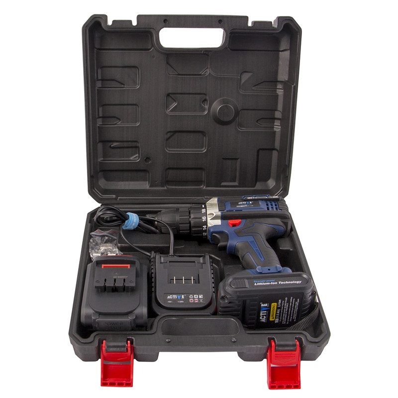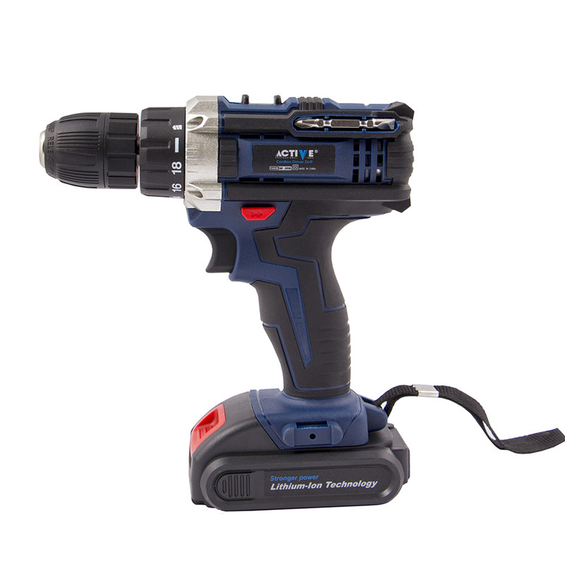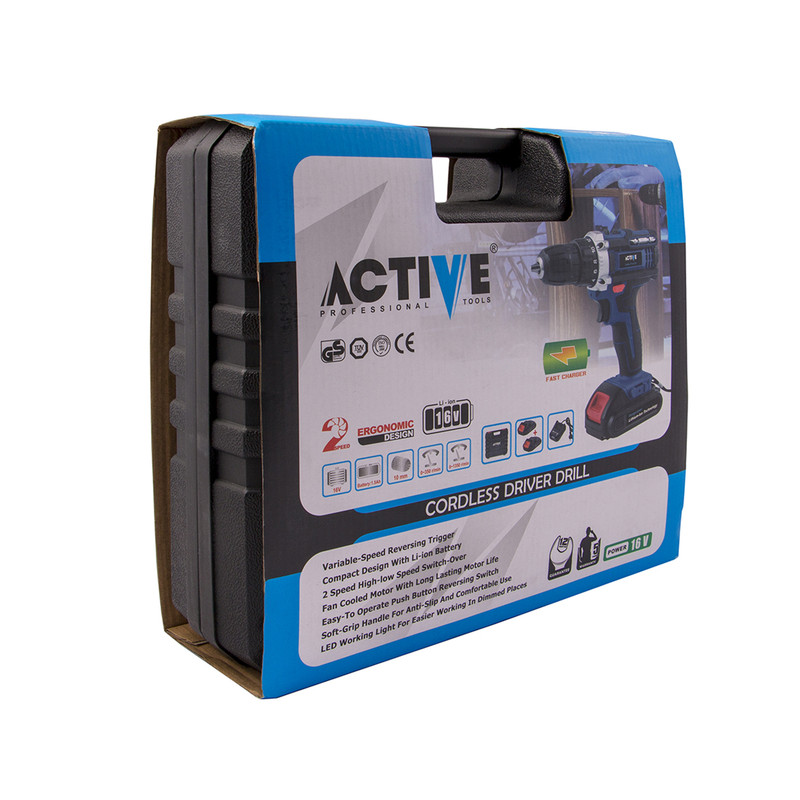 دریل شارژی یکی از پرکاربردترین ابزار در مشاغل گوناگون است. دریل شارژی از یک موتور کوچک از نوع DC، یک گیربکس سیاره ای، یک ترکمتر و یک باتری تشکیل شده است. دریل برقی از یک موتور AC تشکیل شده و در انواع گیربکسی، گیربکس از نوع ساده می باشد. گیربکس سیاره ای، تشکیل شده است از یک چرخدنده مرکزی به نام چرخدنده خورشیدی که به موتور متصل می باشد، چرخدنده های سیاره ای که دور چرخدنده خورشیدی می چرخند و به محور خروجی متصل می باشند. دریل شارژی16 ولت لیتیوم اکتیو مدل AC-3416L یکی از مجموعه دریل های اکتیو با قدرت بالا میباشد. هرچه ولتاژ دریل شارژی بیشتر باشد، قدرت دستگاه نیز بیشتر میشوددریل شارژی16 ولت اکتیو به ما امکان انتخاب حالت دریل یا پیچگوشتی را میدهد. دریل شارژی16 ولت لیتیوم اکتیو دارای ترکمتر داخلی قابل تنظیم جهت باز و بسته نمودن پیچ ها میباشد (چنانچه پیچی ظریف و حساس میباشد و نیاز یه چرخاندن با قدرت کمتری میباشد (و یا بلعکس)، با استفاده از ترکمتر روی این دستگاه میتوان فشار گشتاور (پیچاندن) را تنظیم نمود. این کار باعث جلوگیری از بریدن پیچ و یا خورده شدن گل (سر) پیچ میشود). همچنین با قرارا دادن حالت ترکمتر روی حالت دریل، میتوان شروع به سوراخکاری نمود. پس این دستگاه هم قابلیت پیچگوشتی بودن و هم قابلیت دریل را دارد.دریل شارژی16 ولت لیتیوم اکتیو دارای کلید الکترونیکی و چپ گرد و راست گرد می باشد که برای باز کردن و بستن پیچ و دریل کاری در حالت چپ گرد و راست گرد استفاده میگردد. يك امكان خوب كه در دریل شارژی 16 ولت اکتیو وجود دارد، وجود لامپ LED میباشد که با وجود مصرف كم باعث ميشود در شب يا در زوايايي كه نور كافي وجود ندارد باز و بسته كردن پيچ و سوراخكاري با ديد مناسب انجام شود.. این دریل شارژی دارای کیف پلاستیکی BMC مقاوم و با دوام میباشد تا براي حمل و نقل دستگاه در جابجايي هاي خارج از كارگاه از كيف حمل استفاده شود. در ساخت این دریل شارژی، از گیربکس فلزی باکیفت و مستحکم و بدنه بسیار ارگونومیک طراحی گردیده و به راحتی میتوان آن را در هنگام کار مهار کرد. دنده های با دوام و سخت کاری شده این دستکاه باعث بالا رفتن عمر مفید و مقاومت این دستگاه شده است. دریل شارژی16 ولت اکتیو دارای یک عدد باطری لیتیوم اضافه میباشد