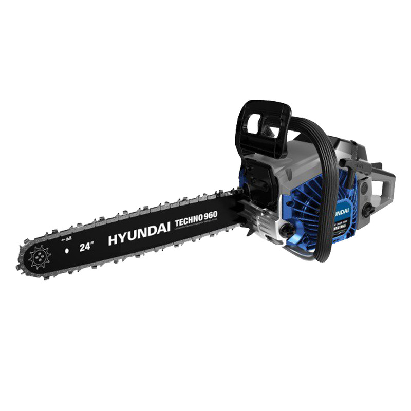 اره زنجیری هیوندای مدل TECHNO 960 دارای تیغه و زنجیر 60 سانتیمتری است. بهرهمندی از موتور 62 سیسی بنزینی دستیابی به سرعت 11000 دور بر دقیقه را ممکن می سازد. از مشخصات فنی این دستگاه می توان به حجم باک 550 میلی لیتر و حجم مخزن روغن 260 میلی لیتری اشاره کرد. همچنین باید به این نکته توجه شود که اره زنجیری های مدل جدید هیوندای همگی دارای سیستم لرزشگیر قوی هستند که باعث راحتی کار کاربر میشود. همینطور هیوندای سیستم ترمز ایمنی را روی تمام اره زنجیریهای جدید خود فعال نموده که سلامتی و امنیت کاربر هنگام کار با اره تضمین شود.