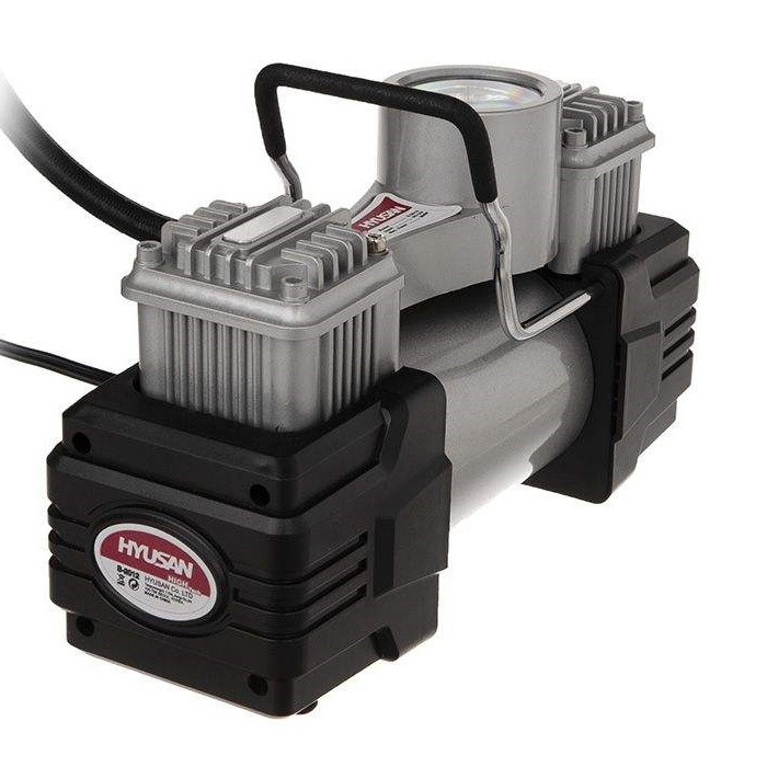 محصولی که مشاهده میکنید کمپرسور باد هیوسان مدل 2012 است با ابعادی بسیار مناسب و قابل حمل که برای استفاده در خودرو مناسب است. به کمک این کمپرسور میتوان در هر کجا که مشاهده کردید باد لاستیک خودرویتان کم شده تنها با استفاده از انرژی الکتریکی خودرو خود، لاستیک را باد کرد. این کمپرسور با توجه بهاندازهی کوچکی که دارد و وزن کم بهراحتی در گوشهای از صندوقعقب خودروی شما جای میگیرد و این امکان را به شما میدهد تا در مواقع استفاده بهراحتی و بدون هیچ سختی بتوان از آن استفاده کرد. ولتاژ ورودی این محصول 12 ولت است و از این لحاظ کاملاً متناسب با برق خروجی باتری خودرو طراحیشده است. این کمپرسور از دو سیلندر بهره میبرد و هوای خروجی آن 150 پی اس آی است و از این نظر از قدرتی معقول و مناسب برای کارهایی نظیر بادکردن لاستیک خودرو، توپ، قایقهای بادی و ... بهره میبرد.