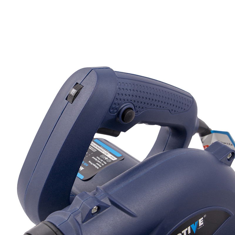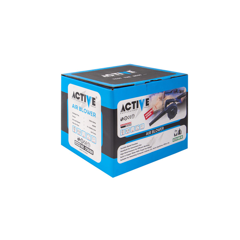 بلوور برقی وسیله ای جهت دمش هوا با قدرت بالا میباشد. این دستگاه عمدتا جهت پاکسازی محیط های مختلف استفاده بسیار بالایی دارد. بلوور برقی اکتیو مدل AC-2560N قابلیت چرخش فن از 0 دور در دقیقه تا 13000 دور در دقیقه را دارد تا هوا را با سرعت بالا به میزان 4 متر مکعب در دقیقه بدمد. این دستگاه دارای قدرت 600وات میباشد تا عملیات دمندگی به راحتی و بدون فشار به دستگاه انجام شود. همچنین میتوان از این دستگاه جهت مکش نیز استفاده نمود. مهمترین ویژگی و وجه تمایز این دستگاه، وجود دیمر (کلید تغییر سرعت دمنده گی) بر روی خود بدنه میباشد تا کاربر حین کار با این دستگاه براحتی میزان دمش هوا را تنظیم نماید و نیازی به خاموش نمودن دستگاه جهت تنظیم مقدار دمش هوا نباشد. در مسیر دمش این دستگاه میتوان از لوله لاستیکی این دستگاه که داخل بسته بندی آن وجود دارد استفاده نمود تا دمش هوا متمرکزتر انجام شود و همچنین دستگاه دورتر قرار گیرد تا گرد و غبار نزدیک به کاربر نشود. این بلوور (دمنده/مکنده) دارای کلید قفل کن میباشد تا در هنگام کار برای مدت طولانی، کاربر این کلید را فشار داده و بطور طولانی و مداوم از این دستگاه استفاده نماید. تمامی مراحل ساخت موتور این دستگاه از قبیل لاک گیری، بالانس، سیم پیچی و... در آرمیچر و بالشتک این دستگاه با استفاده از دستگاه های تمام اتوماتیک مطابق با آخرین فناوری روز دنیا تولید شده تا عمر مفید دستگاه به حداکثر برسد. بعلت دور بالای این دستگاه از بلبرینک با کیفیت و تقویت شده در این دستگاه استفاده شده است. بنه این دستگاه دارای طراحی ارگونومیک جهت خوشدستی و راحتی کاربر در حین کار طراحی شده و همچنین بدنه این دستگاه دارای عایق دوبل و از جنس PA6+GF30 که بهترین مواد جهت ساخت بدنه ابزار آلات برقی میباشد استفاده شده است. این دستگاه دارای کیسه جمع کننده گرد و غبار با مارک اکتیو جهت جمع آوری گرد و غبار نیز میباشد.