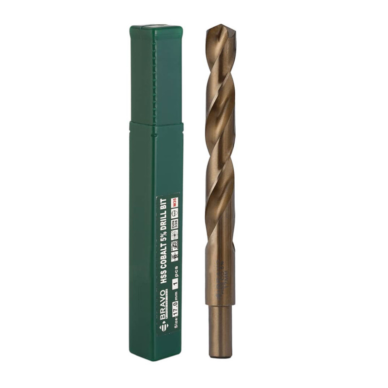 متههای کبالت براوو از آلیاژ فولاد 5 درصد کبالت با آنالیز M35 ساخته شده است. و همینطور نوک این مدل از متههای کبالت با زاویه 135 درجه طراحی شده است که این طراحی خاص باعث افزایش سرعت سوراخکاری نسبت به متههای مشابه میشود. مته 5 درصد کبالت براوو سایز 17 تحت استاندارد DIN338 تولید شده و به دلیل عملیات حرارتی انجام شده روی متهها در برابر دما و ساییدگی بسیار مقاوم است. متههای کبالت براوو قابلیت انجام عملیات سوراخکاری در انواع سطوح فلزی و استیل و چوب و پروفیل را دارد. نکتهی مهم در مورد متههای کبالت 5 درصد براوو این است که کلیهی مته کبالتهای این برند از سایز 13 الی 20 میلیمتر قابل استفاده در سه نظام 13 میلیمتر نیز است ( دنباله 13 میلیمتر هستند). این محصول در سایز 17 میلیمتر تولید شده است و در بسته بندی تکی به فروش میرسد.