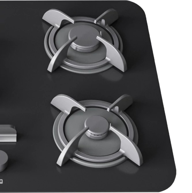 در این اجاق، فاصله مناسب بین سرشعلهها باعث شده قرارگیری قابلمههای استاندارد تا قطر ۳۳ سانتیمتر بهصورت همزمان و بدون تداخل امکانپذیر باشد. صفحه شیشهای از جنس سکوریت ۸ میلیمتری ساخته شده که در برابر حرارت و ضربه مقاومت بالایی دارد.