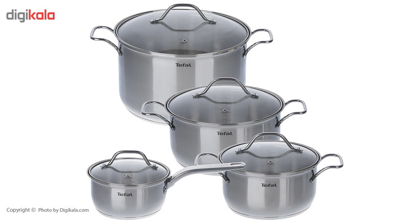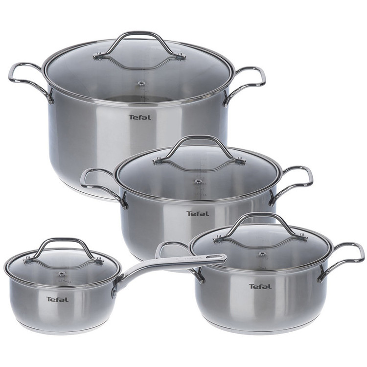 ظروف پخت و پز استیل از ظروفی هستند که جزو کمخطرها و یا حتی میتوان گفت بیخطرها هستند. چون کاملا از استیل ساخته شده و روکش ندارند. سرویس پخت و پز 8 پارچهی مدل «Intuition» برند «Tefal» (تفال) یکی از سرویسهای پرطرفدار این برند است. یک سرویس با سه قابلمه در سایزهای 24،20 و 28 سانتیمتر با درپوشی از جنس شیشه نشکن و یک تابه سایز 16 که به عنوان شیرجوش هم میتواند مورد استفاده قرار گیرد. برای راحتی کار به خصوص برای نوعروسان بدنه داخلی این ظروف درجهبندی شده که بتوان میزان آب موردنیاز برای پخت هر غذا را محاسبه کرد. این سرویس از استیل ضدزنگ ساخته شده بنابراین حتی میتوان آن را برای شستوشو در ماشین ظرفشویی قرار داده شود. بر روی درپوشها حفرهای کوچک برای خروج بخار در نظر گرفته شده است. بر خلاف نظر بعضی از افراد که میگویند این ظروف برای پخت برنج مناسب نیست، برنج و تهدیگی که از این قابلمهها خارج میشود مانند تهدیگ پلوپز صاف و یکدست است، فقط باید مراقب سوختن غذا بود که این دقت در هنگام استفاده از سایر ظروف هم لازم است. تفال یکی از شرکتهای معروف در تولید محصولات مرتبط با آشپزخانه است که کیفیت بالای تولیدات آن در همهی کشورها زبانزد است و به دلیل محصولات بینظیرش است که در بین هزاران برند، تفال جزو ده برند اول مطرح است.