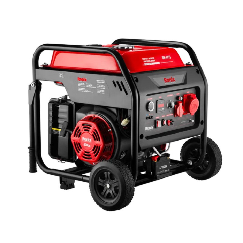 ژنراتور اینورتر کامپکت 8000 وات رونیکس مدل RH-4773 دستگاهی قدرتمند و کارآمد است که برای مصارف عمومی، کارگاهی و صنعتی طراحی و تولید شده است. این ژنراتور با موتور چهارزمانۀ 420 سیسی و حداکثر توان خروجی 8000 وات، عملکردی بینظیر و پایدار را در مدت زمان طولانی فراهم میکند.