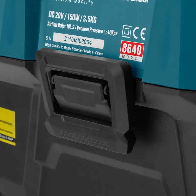 بدنه پلاستیکی جارو شارژی رونیکس 8640 در عین سادگی، مقاوم و متناسب با کاربری آن طراحی شده است. مخزن جمعآوری زباله ظرفیت مناسبی برای نظافت خودرو دارد و تخلیه آن بهراحتی انجام میشود. وجود فیلتر HEPA قابل شستوشو از بازگشت ذرات ریز گردوغبار به محیط جلوگیری میکند و به تمیزتر ماندن هوای داخل خودرو کمک میکند.