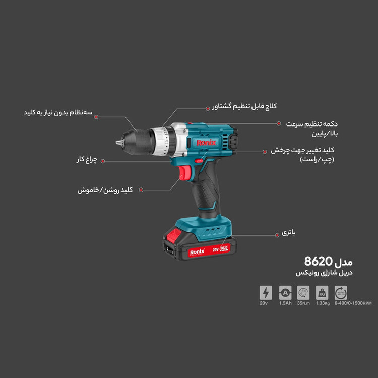 دریل پیچ گوشتی رونیکس مدل 8620