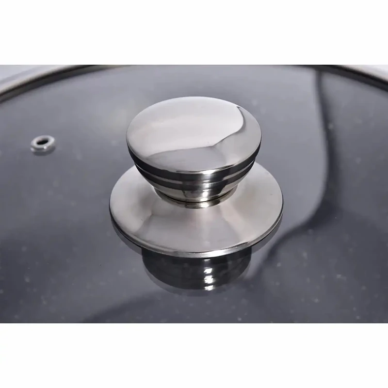 این قابلمه مجهز به درب شیشهای پیرکس مقاوم در برابر حرارت است که به شما امکان میدهد بدون برداشتن درب، فرآیند پخت غذا را مشاهده کنید. وجود حلقه تنفسی روی درب نیز باعث خروج بخار اضافی شده و از سرریز شدن یا پاشش مواد غذایی جلوگیری میکند.
