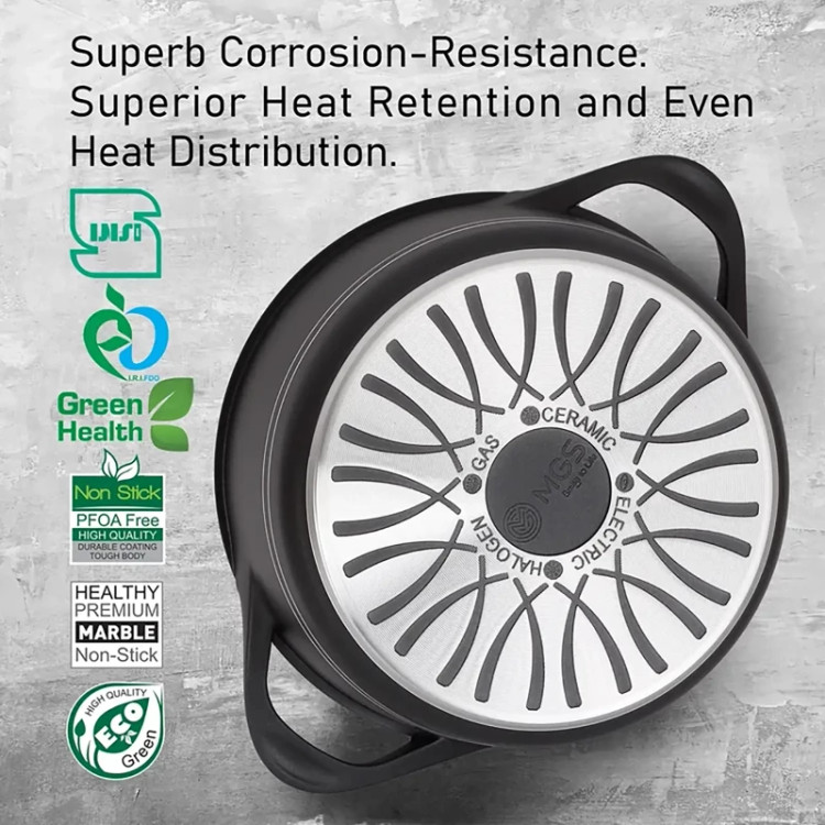 قابلمه ام جی اس مدل Italia B با طرح ایتالیایی منحصر به فرد تولید شده است که ترکیبی از زیبایی و کارایی را ارائه میدهد. این طراحی باعث میشود قابلمه علاوه بر عملکرد عالی، ظاهری خاص و جذاب روی اجاق گاز داشته باشد.