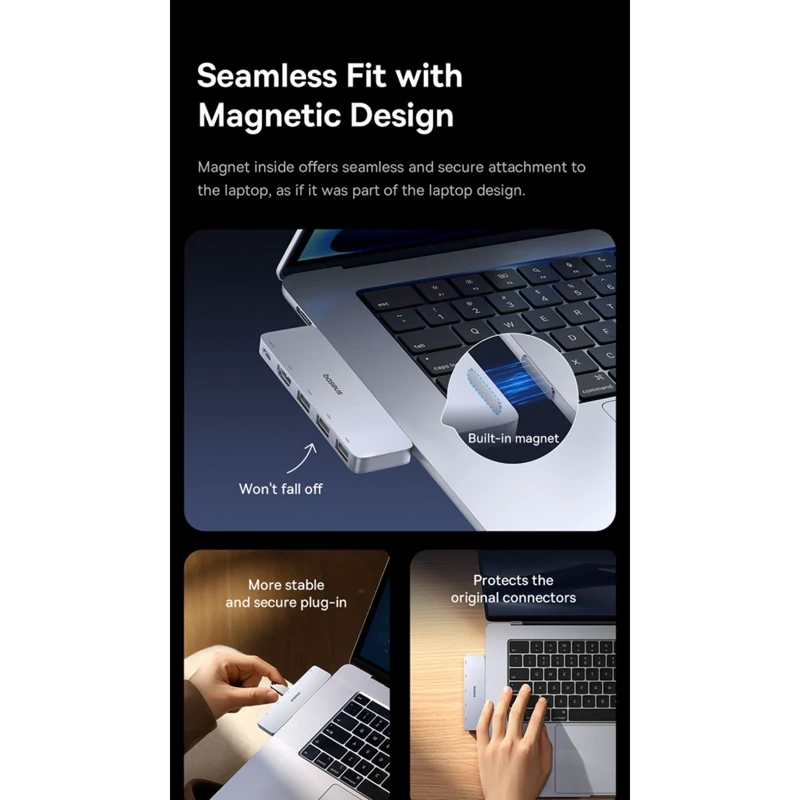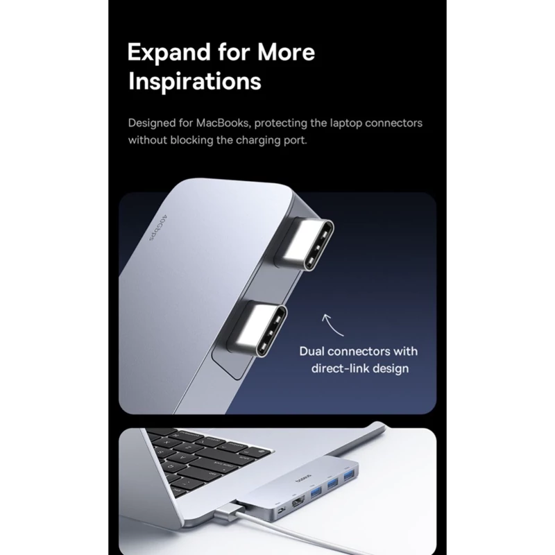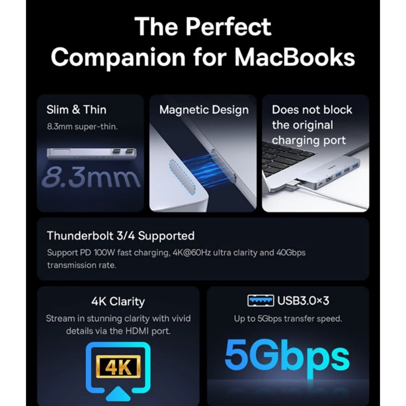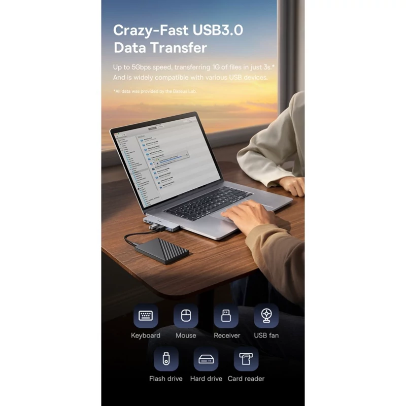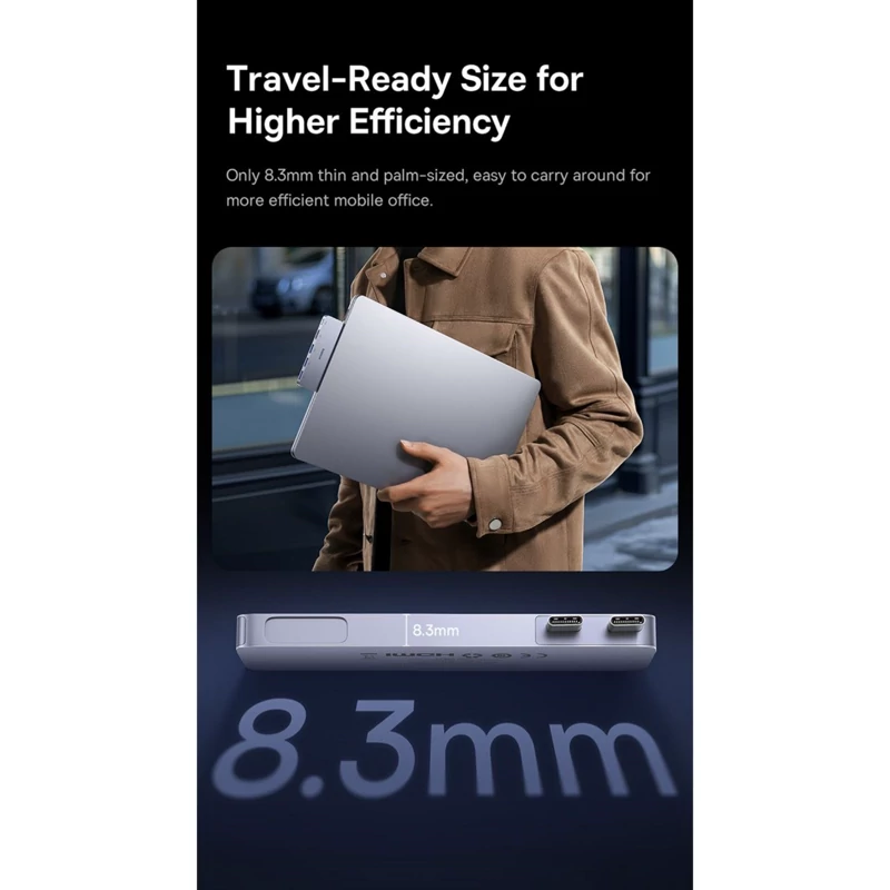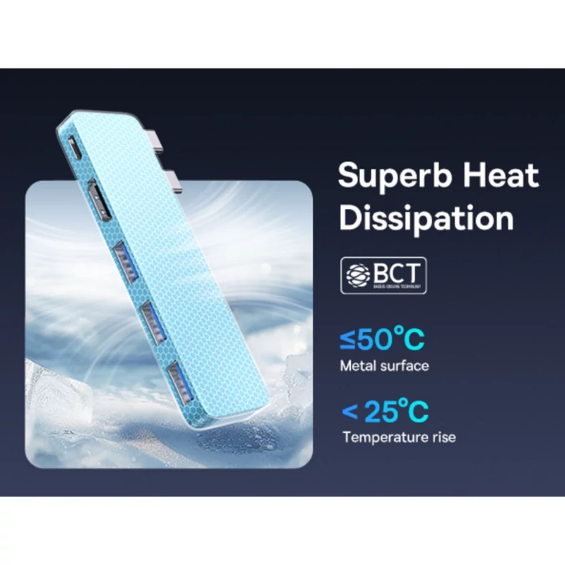 هاب ۵ پورت USB‑C سری “UltraJoy” از برند باسئوس برای کاربرانی طراحی شده که میخواهند یک درگاه USB‑C دستگاهشان (لپتاپ، تبلت یا گوشی) را به چند پورت کاربردی تبدیل کنند: هم برای انتقال داده، هم اتصال لوازم جانبی، هم خروجی تصویر. این هاب مخصوص کسانی است که با کمبود پورت مواجهاند و نیاز دارند موس، کیبورد، فلش، هارد اکسترنال، نمایشگر یا تلویزیون را همزمان وصل کنند. طراحی کامپکت و سبک آن، استفاده در خانه، محل کار، سفر یا حتی میز کار همراه را ساده میکند.