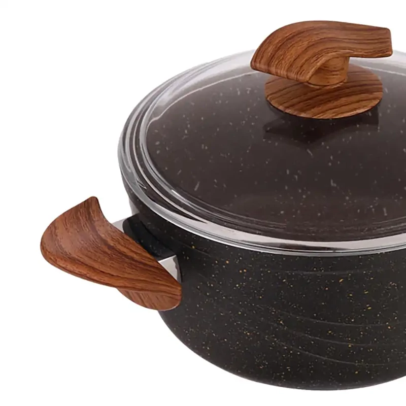 پوشش داخلی: روکش نچسب گرانیتی چندلایه ساخت Kimflon، مقاوم در برابر خراش و مناسب برای پختوپز با حداقل روغن.