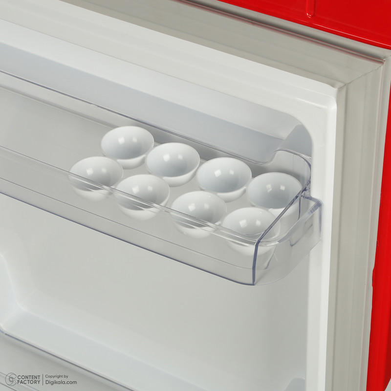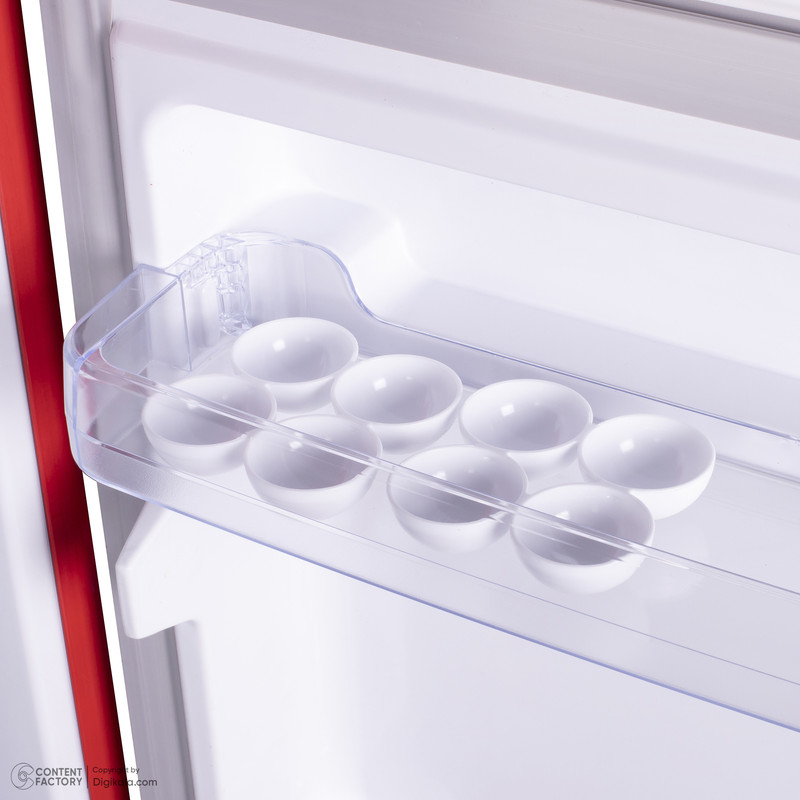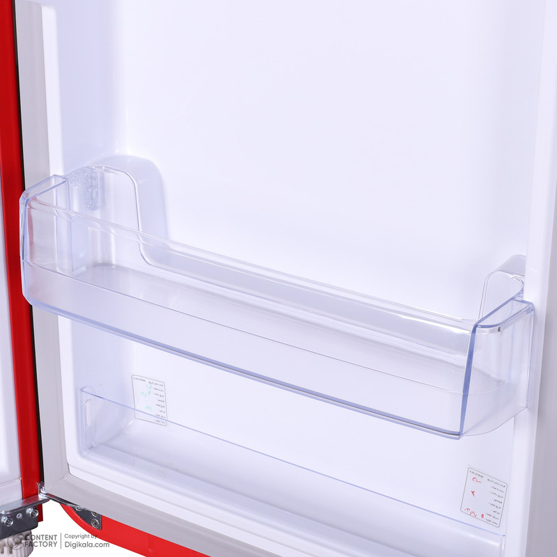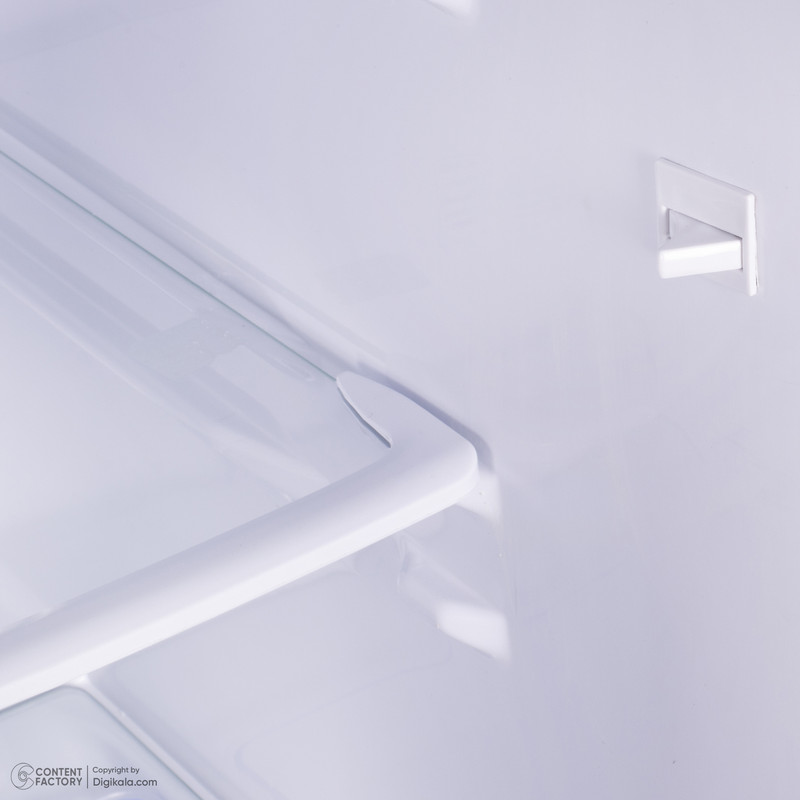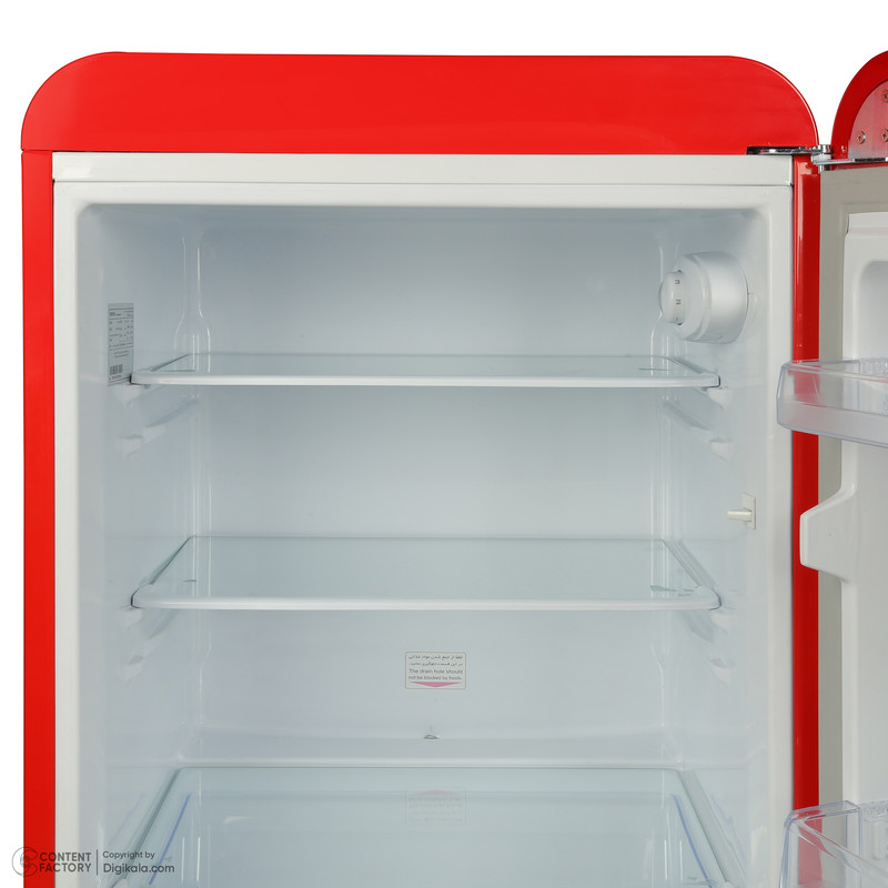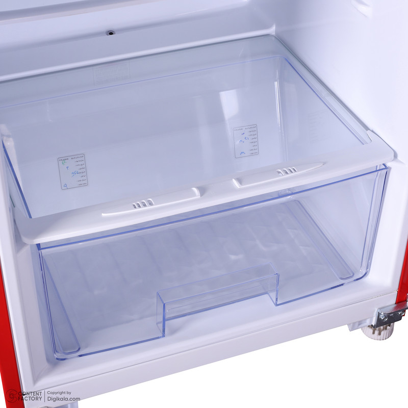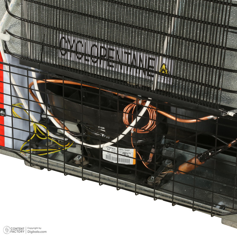 بخش یخچال با گنجایش ۱۶۰ لیتر، دارای سه طبقه اصلی، سه طبقه درب و یک کشو است. دستگیره درب از نوع میلهای است و جهت باز شدن آن به سمت راست است. میزان صدای دستگاه ۴۳ دسیبل است که در سطح قابل قبولی قرار دارد. اقلام همراه شامل قفسه تخم مرغ، قالب یخ و قفسه بطری نوشیدنی است.
