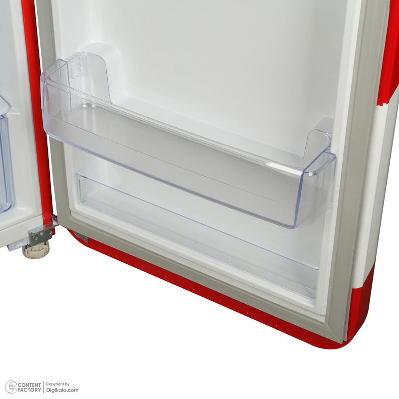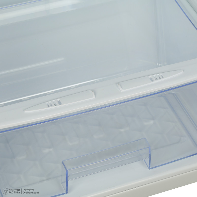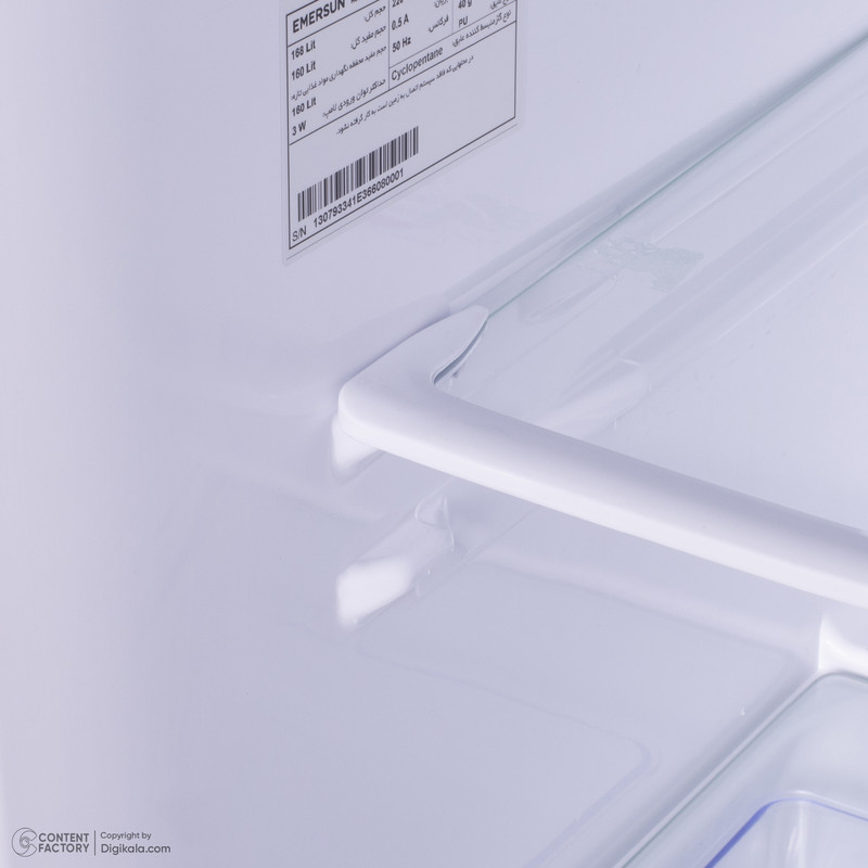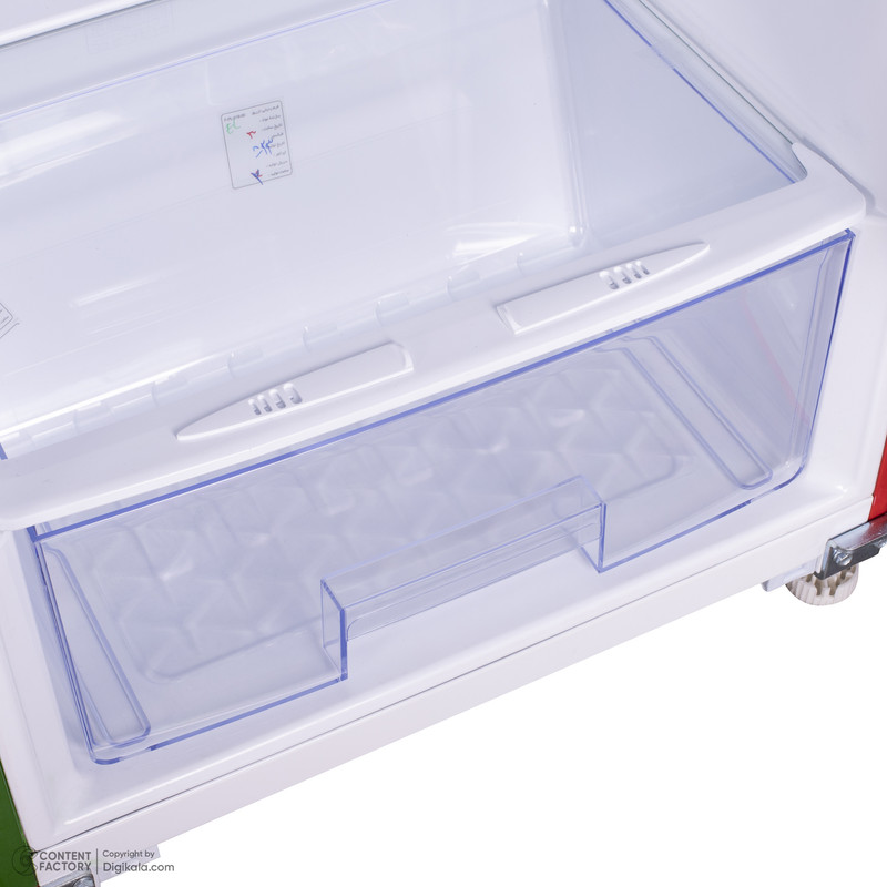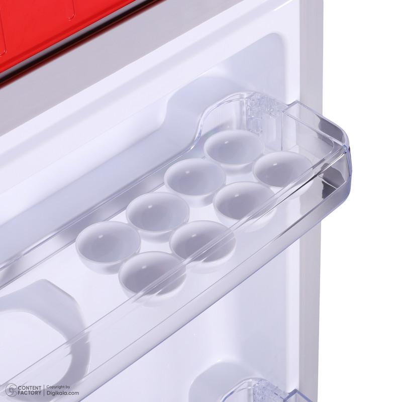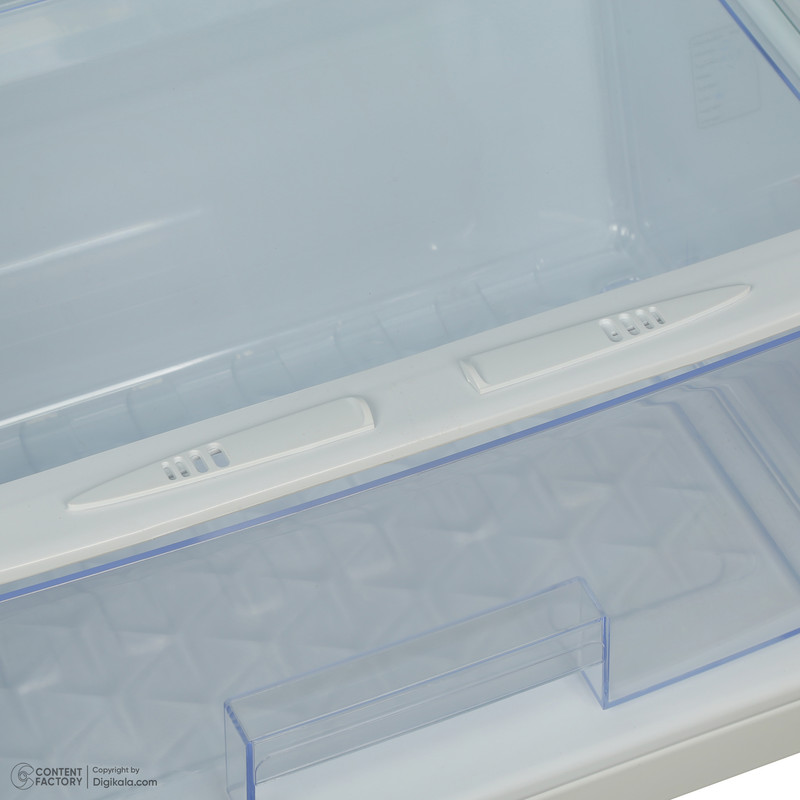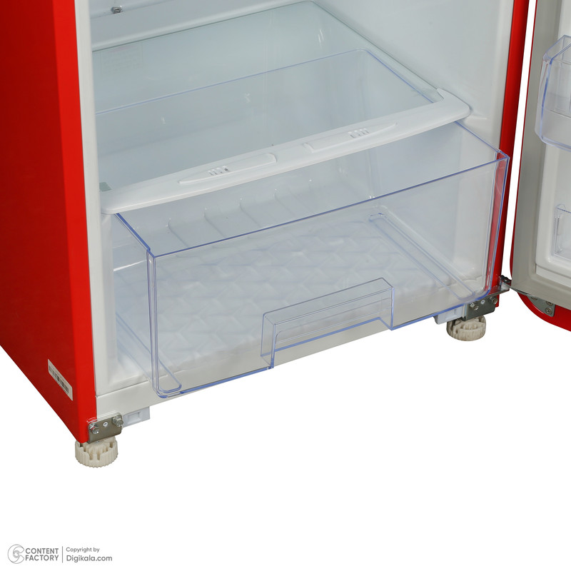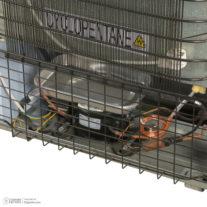 بخش یخچال با گنجایش ۱۶۰ لیتر، دارای سه طبقه اصلی، سه طبقه درب و یک کشو است. دستگیره درب از نوع میلهای است و جهت باز شدن آن به سمت راست است. میزان صدای دستگاه ۴۳ دسیبل است که در سطح قابل قبولی قرار دارد. اقلام همراه شامل قفسه تخم مرغ، قالب یخ و قفسه بطری نوشیدنی است.