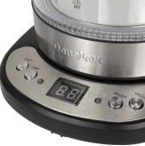 مدل DN-185 ظاهر مینیمال و جمعوجوری داره. کتری و قوری هر دو از جنس شیشهی مقاوم به حرارت ساخته شدن و این شفاف بودن باعث میشه همیشه بدونی چقدر آب یا چای داخلش هست. پایهی گرمکننده معمولاً از پلاستیک فشرده و استیل ساخته شده که دوام خوبی هم داره و تمیز کردنش راحته.