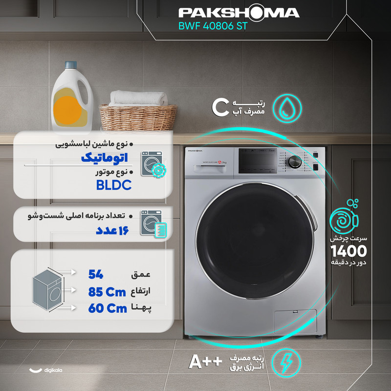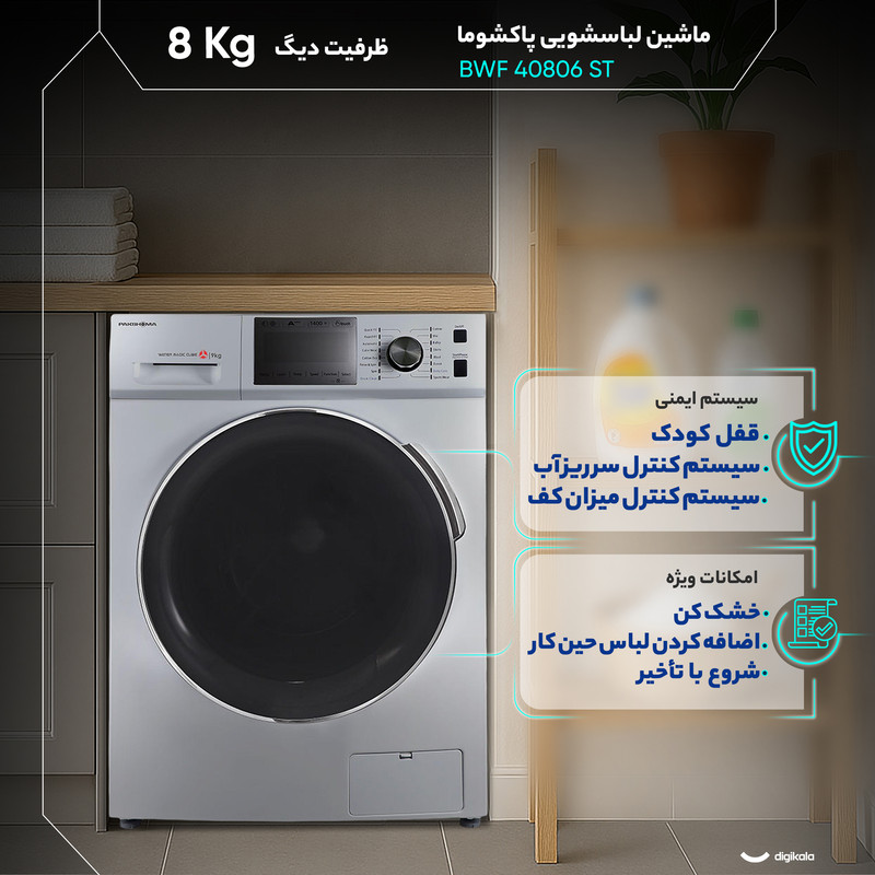 ماشین لباسشویی 8 کیلوگرم اتوماتیک پاکشوما مدل BWF 40806 ST