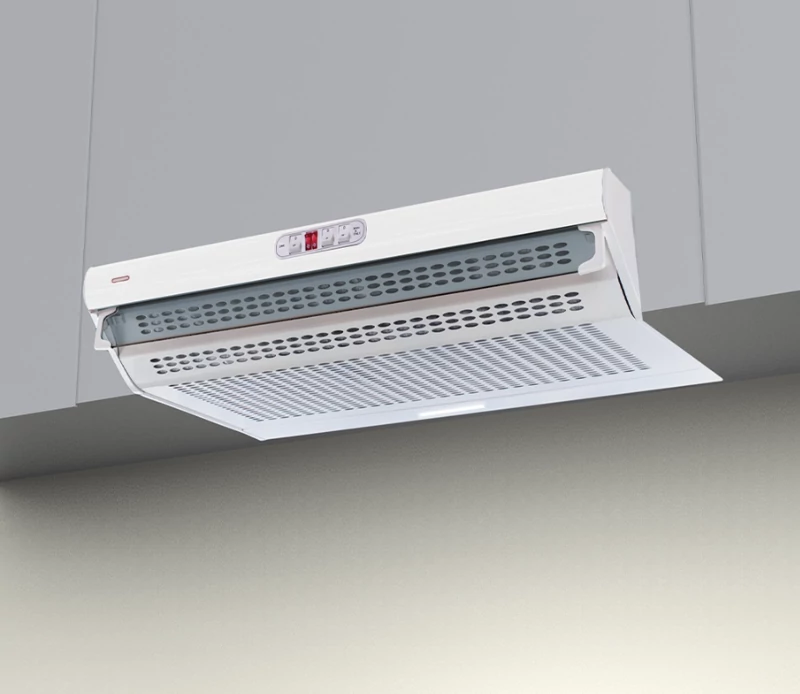 طراحی این هود بهگونهای است که بهراحتی زیر کابینتهای دیواری نصب میشود و بدون اشغال فضای اضافی، تهویه مؤثر آشپزخانه را انجام میدهد. نصب سادهتر نسبت به بسیاری از هودهای شومینهای و توکار، یکی از مزیتهای مهم این مدل محسوب میشود.